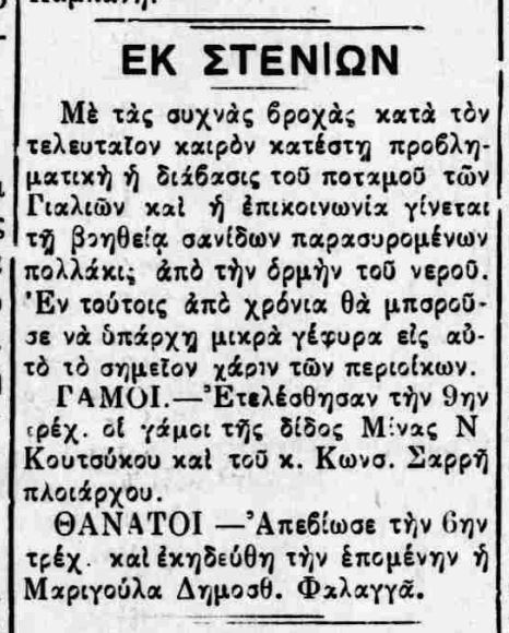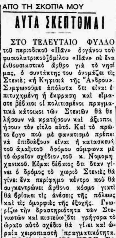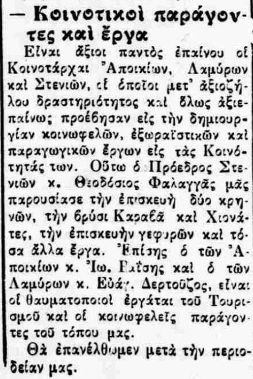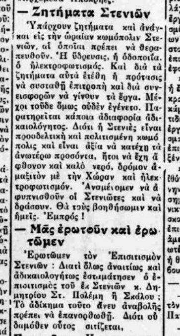 Αποκομμάτα εφημερίδων που αφορούσαν τις Στενιές