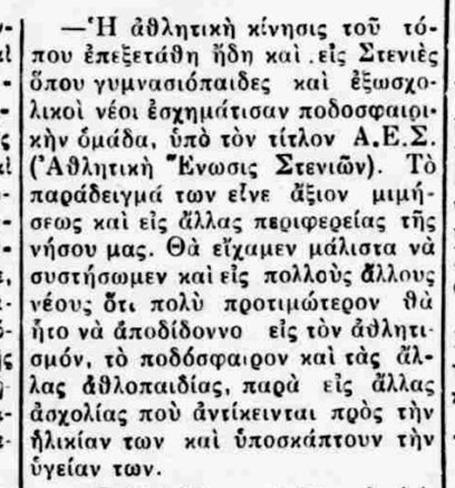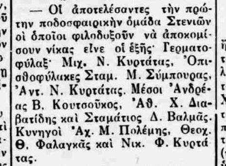 Αριστερά, αποκόμματα από τον Ανδριώτη της 15ης Μαρτίου 1947 που αναφέρονται στην ίδρυση ποδοσφαιρικής ομάδας των Στενιών.