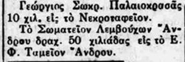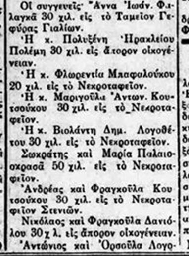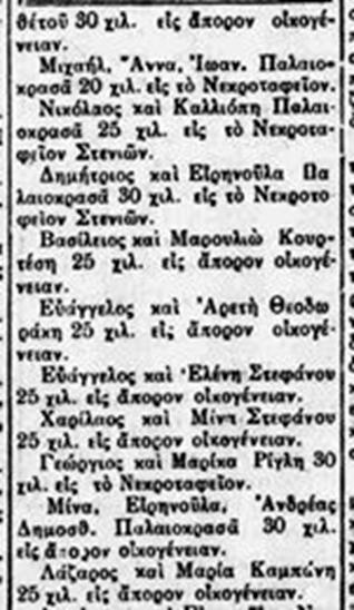 Χαρχαρός Ηρακλής Νικ.: Χαρχαρός Ηρακλής του Νικολάου (113531) #2443 Παλαιοκρασσάς Ανδρέας Μιχ.: Παλαιοκρασσάς Ανδρέας του Μιχαήλ (131544) #874 info Γιαννίσης Αντώνιος Νικ.: Γιαννίσης Αντώνης του Νικολάου (Ντόντος) (1211) #3265 Σύμπουρας Ευάγγελος Δημ.: Σύμπουρας Ευάγγελος του Δημητρίου (12271) #1760 και Γιαλούρης Ανδρέας Νικ.: Γιαλούρης Αντρίκος του Νικολάου (122223) #2945 info.