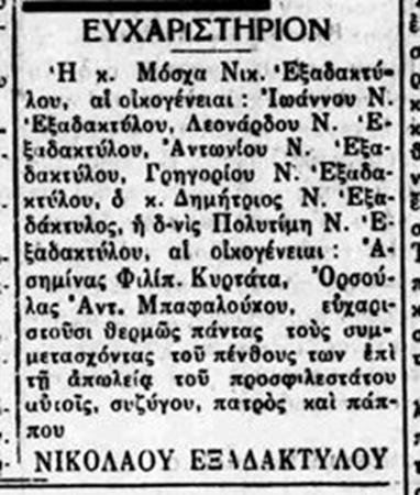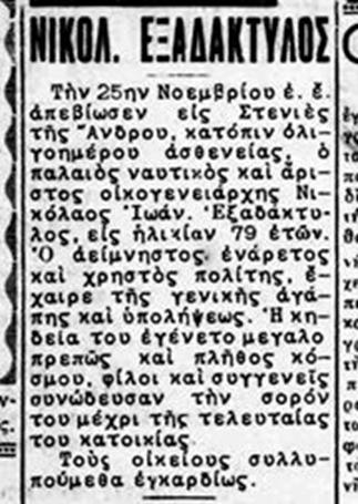 Κάτω, αποκόμματα από τον Ανδριώτη της 31 Δεκεμβρίου 1948 που αναφέρονται στο θάνατο του Νικολάου Ιωάννη Εξαδάκτυλου (12) #803 info που συνέβη στις 25 Νοεμβρίου 1948. |