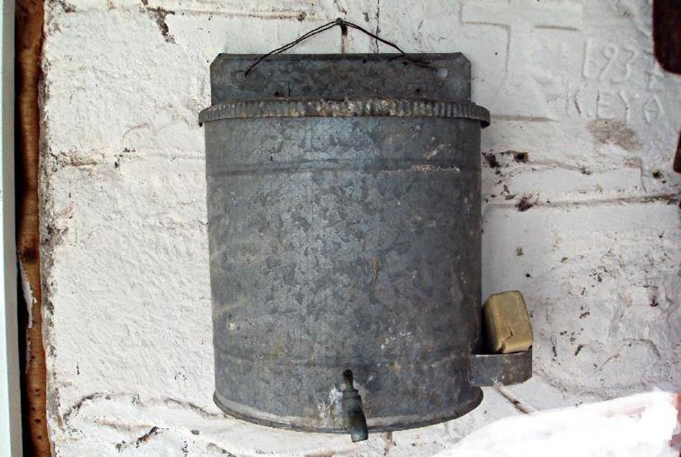 Τσίγκινο δοχείο (χωρητικότητας κατά μέσο όρο 10 λίτρων), με βρυσαράκι στο κάτω εμπρός μέρος. Το γέμιζαν με νερό και η χρήση του ήταν για την καθαριότητα του προσώπου, των δοντιών και των χεριών. Στη φωτογραφία επάνω φαίνεται στο κάτω δεξιό μέρος του δοχείου και θήκη για το σαπούνι.
