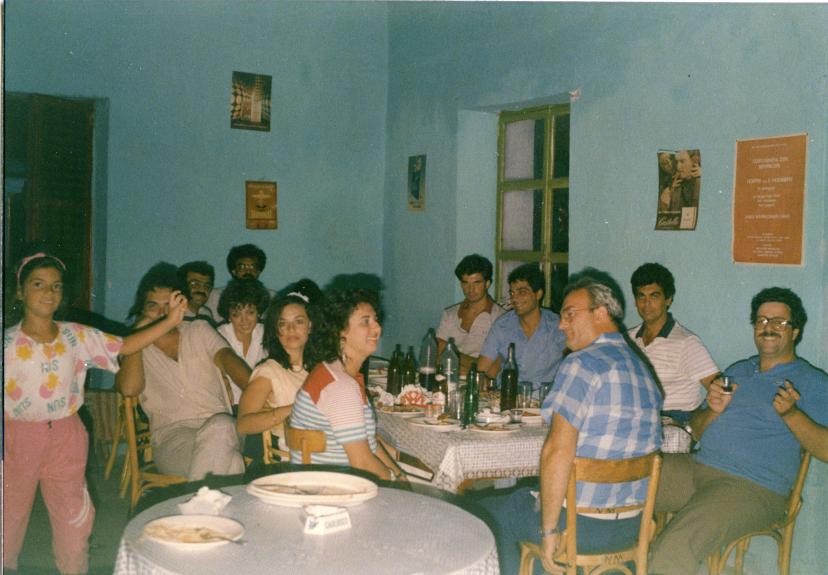 Πάνω και κάτω φωτογραφίες από Στενιώτες στη δεκαετία του 1980 στο μαγαζί του Κούδη. Ο Γιώργης Μανδαράκας στην πάνω φωτογραφία καθιστός δεξιά. Ακρη αριστερά ο κος Σοφοκλής Καραγιάννης. Στην πάνω φωτογραφία φαίνονται το jukebox μάρκας ROCK-OLA των 200 επιλογών καθώς και κλειστή η μεσόπορτα που συνέδεε τους δύο χώρους του μαγαζιού.