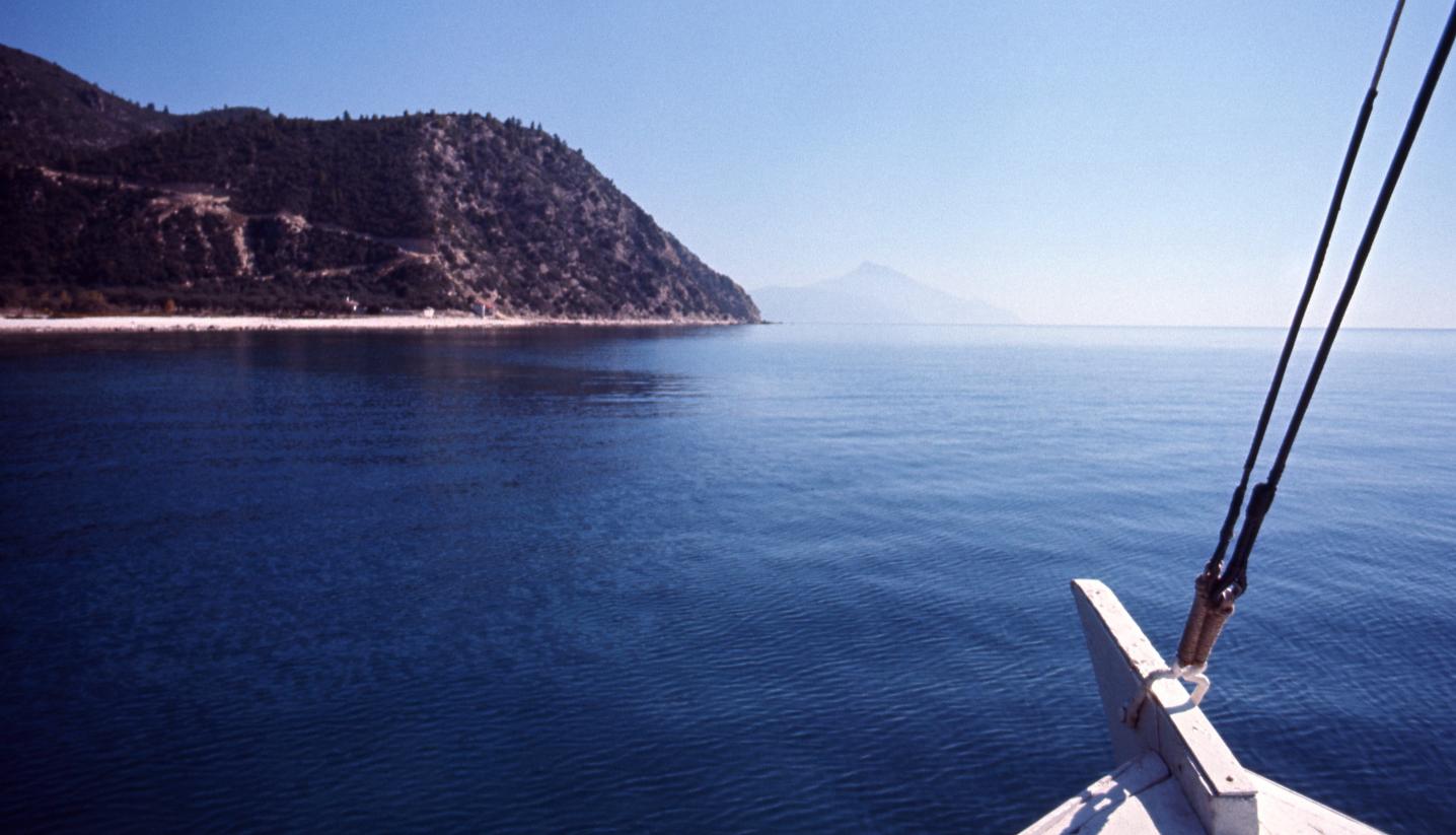 Approaching the Holy mountain, to the centre at a distance Πλησιάζοντας το Αγιον Ορος, που φαίνεται αμυδρά στο κέντρο στο βάθος