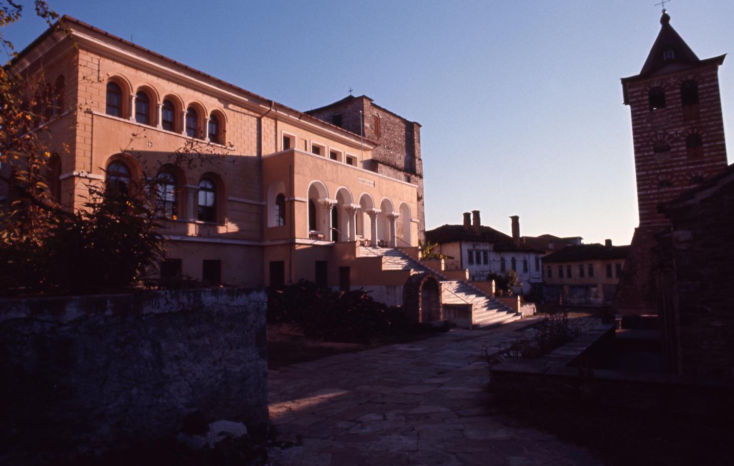 The Protaton (the headquarters of the monastic community). To the right the bell tower of the church of Protaton.