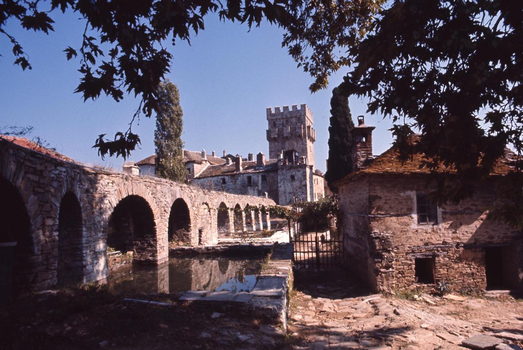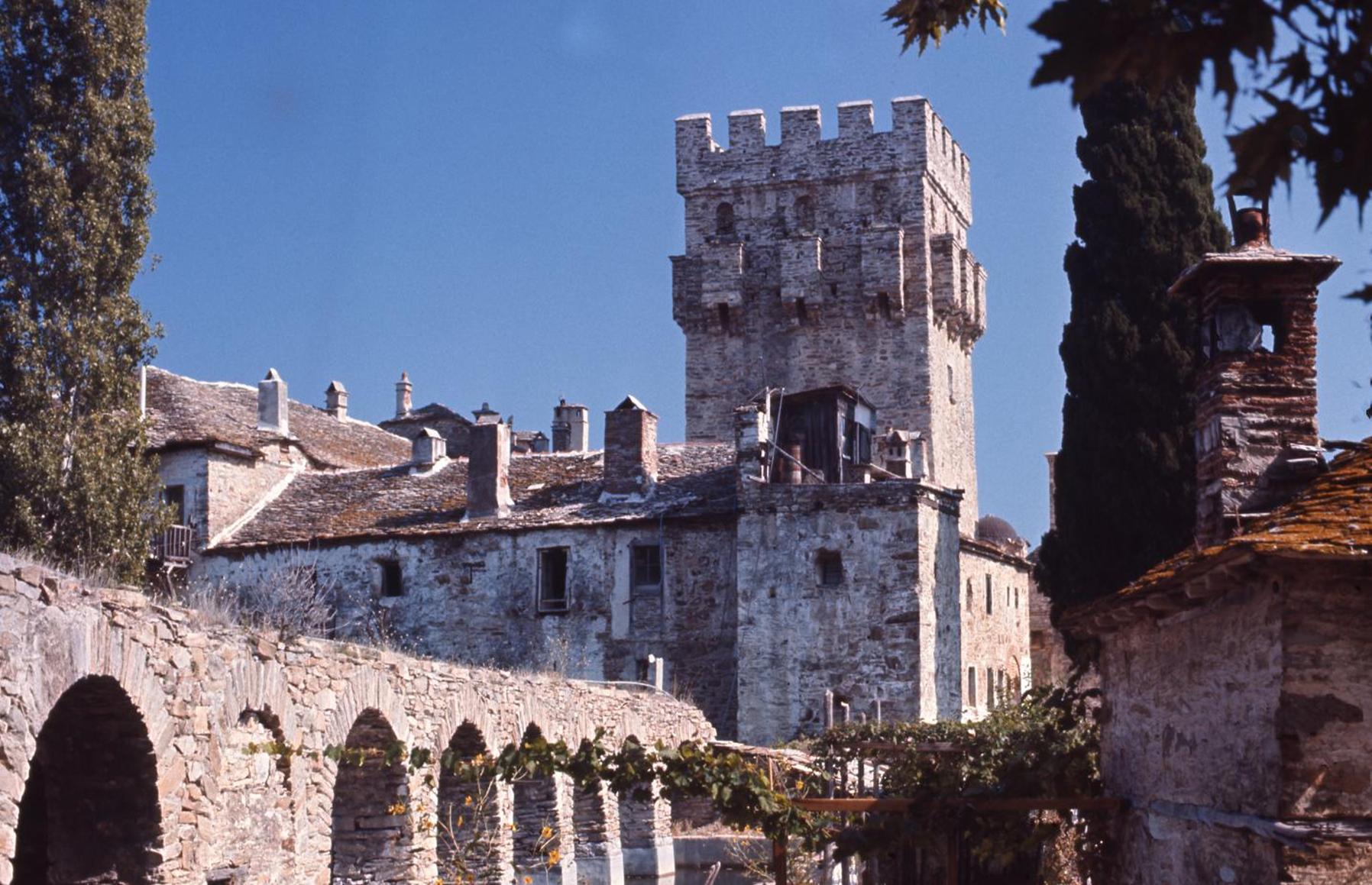 Stavronikitas Monastery, the aqueduct and the tower