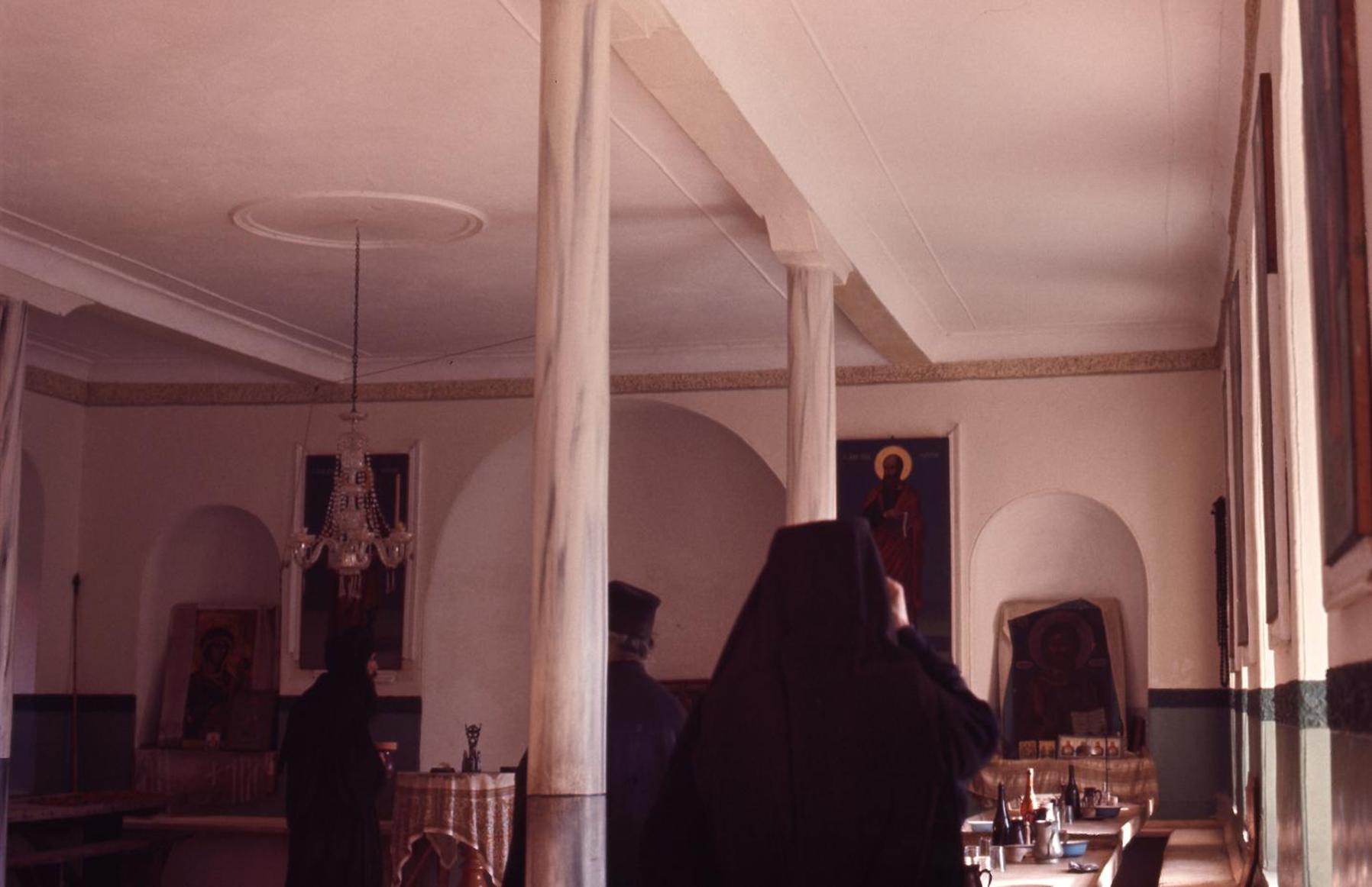 Karakallou monastery, Trapeza (the Refectory). Monks preparing to have lunch