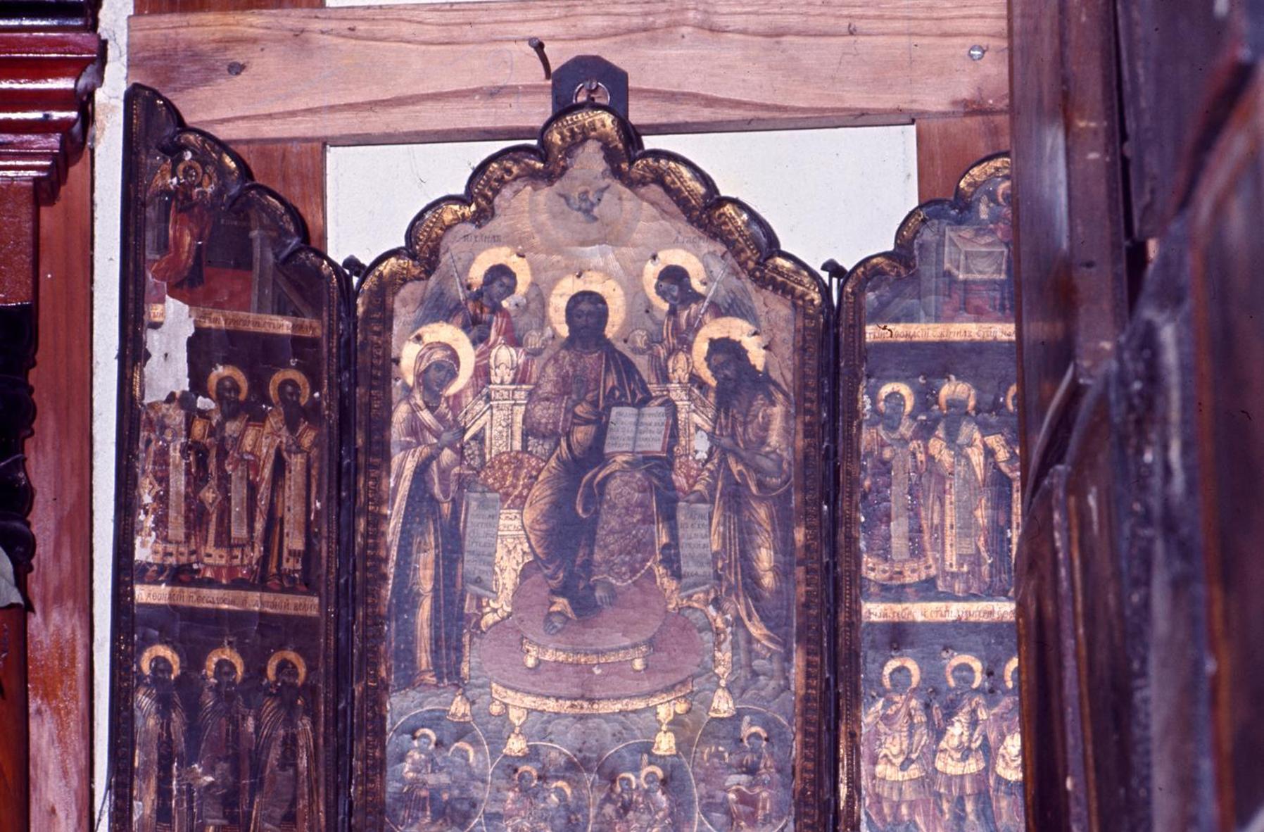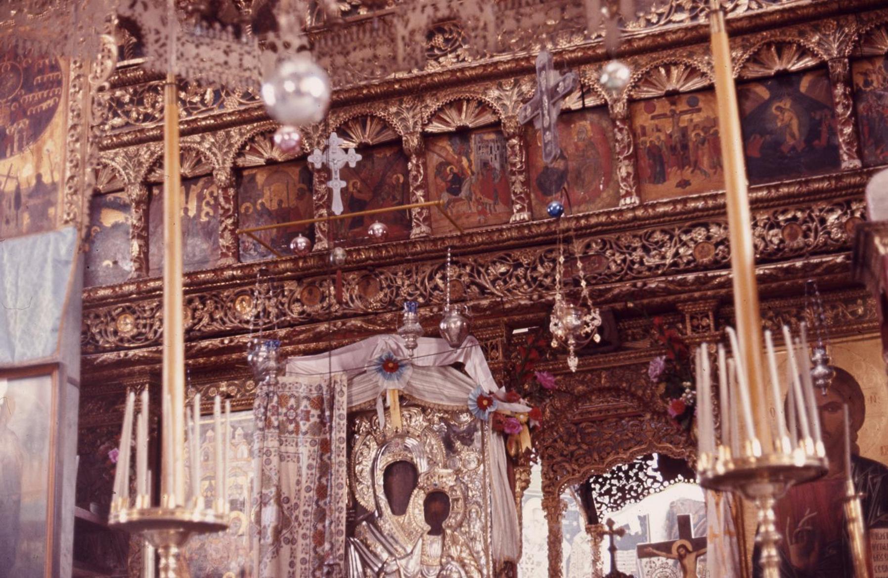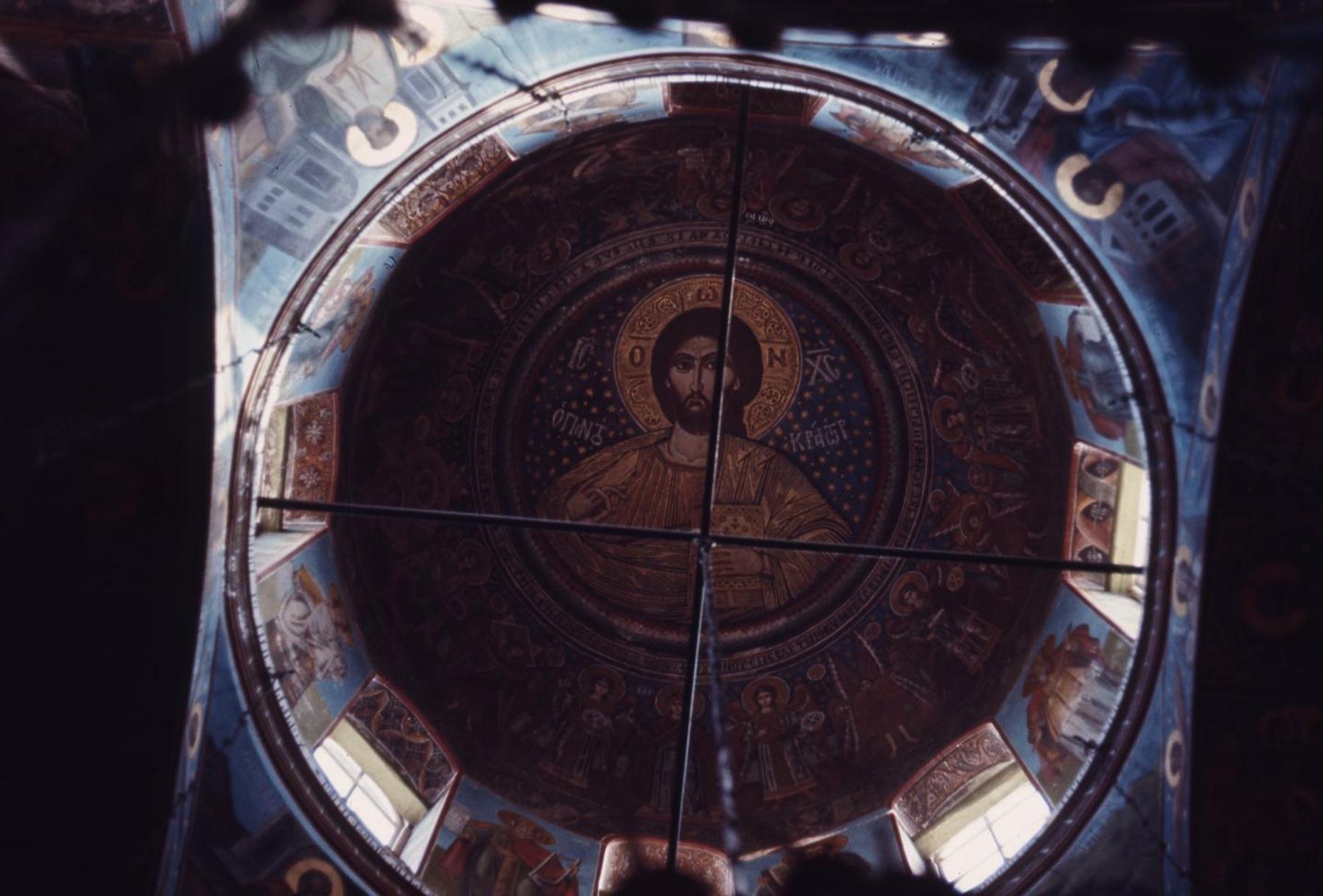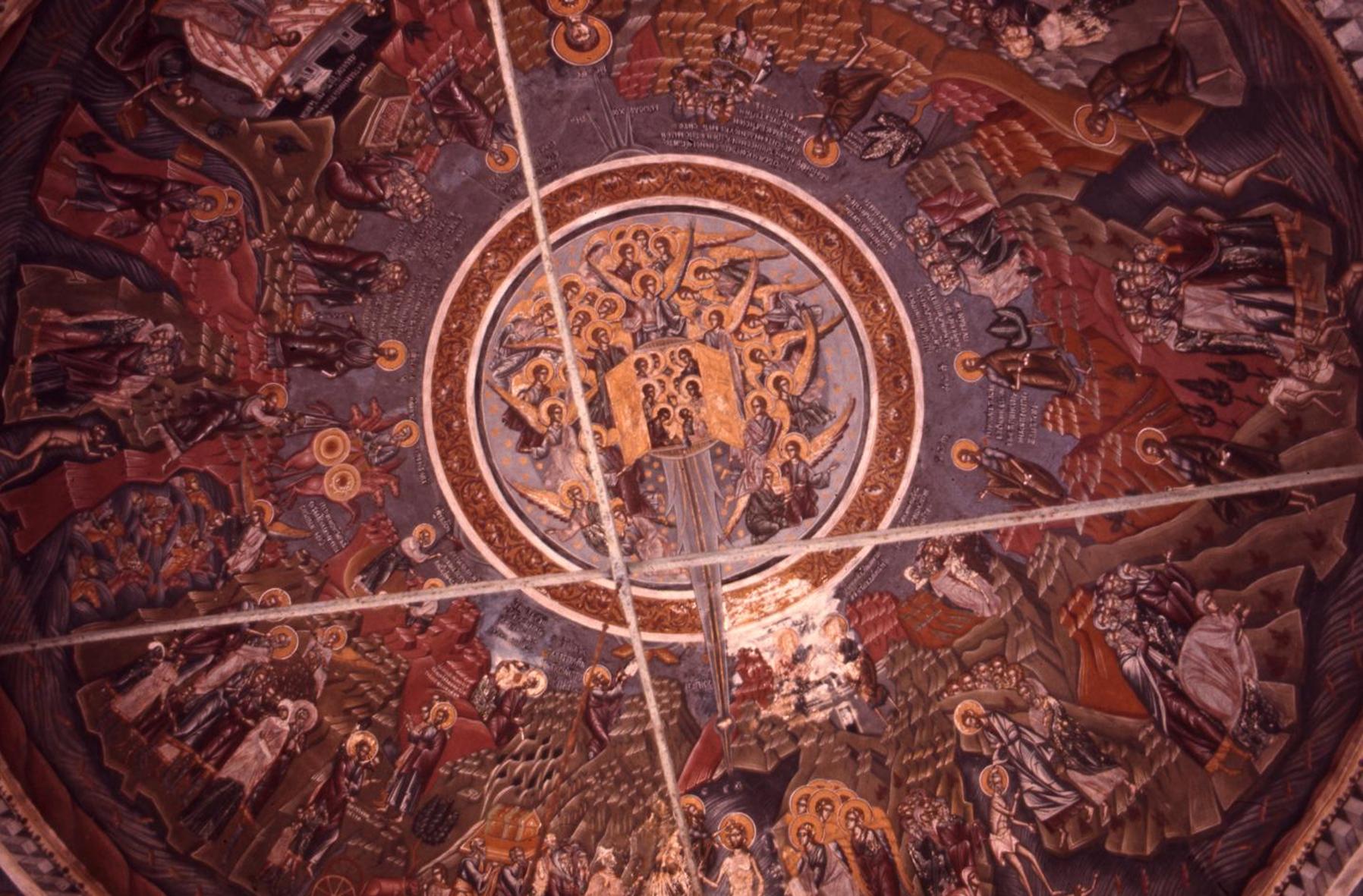 Megisti Lavra Monastery, inner side of church domes and icons.