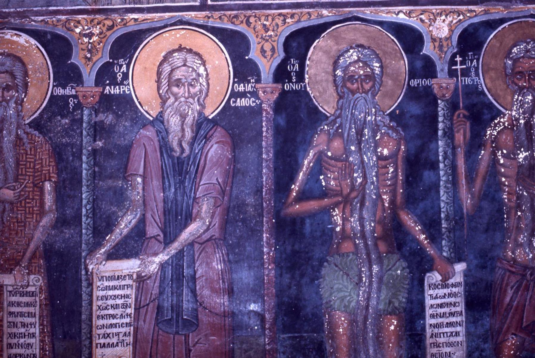 The wall opposite the arcade is covered with frescoes depicting scenes from the book of the Apocalypse