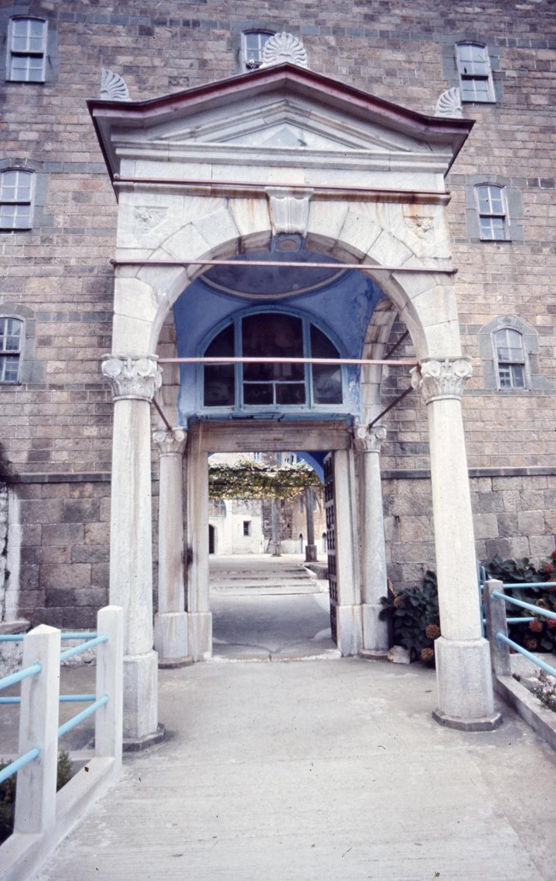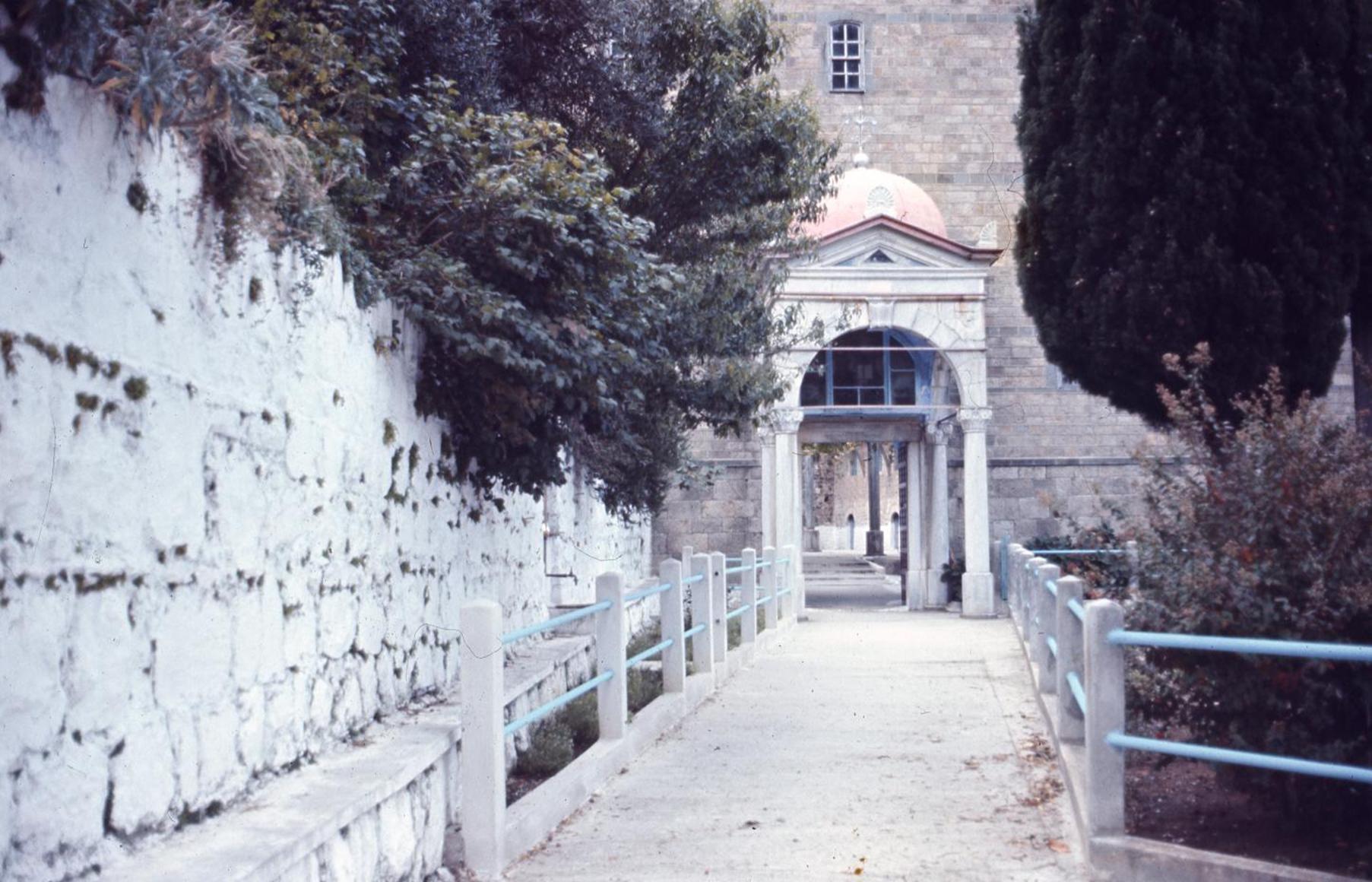 Η θέα της εσωτερικής αυλής από την πύλη του μοναστηριού.