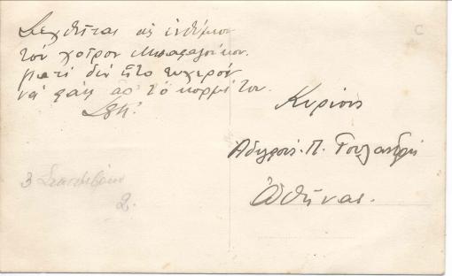 Ο Αντώνης (στο κέντρο όρθιος). Η κάρτα (προς τους αδελφούς Γουλανδρή) έγραφε: