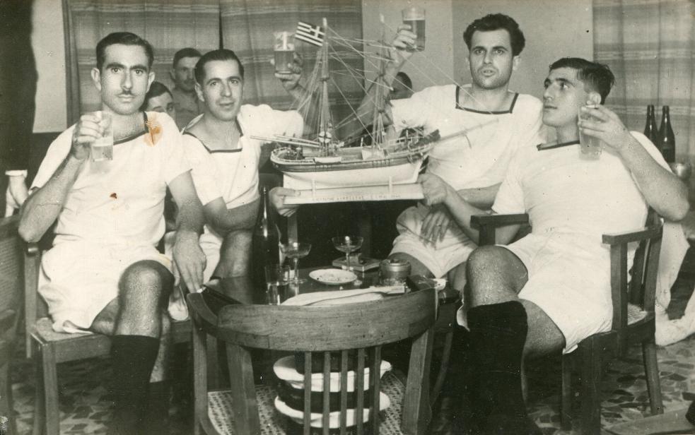 Κάτω (δεξιά στη φωτογραφία), όταν υπηρετούσε τη θητεία του στο Βασιλικό Ναυτικό.