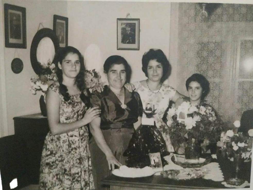 Οι πιατέλες με τα γλυκά είναι στολισμένες με χρωματιστά σελοφάν. Στο πάνω μέρος του σελοφάν της πιατέλας εμπρός από την Μαντούλα είναι καρφιτσωμένη η φωτογραφία του ξενιτεμένου αδελφού τους Μιχάλη.