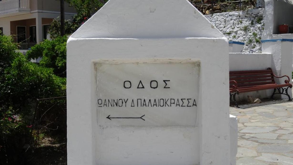 Οδός Ιωάννου Δ. Παλαιοκρασσά - επιγραφή στην Πεντάβρυση