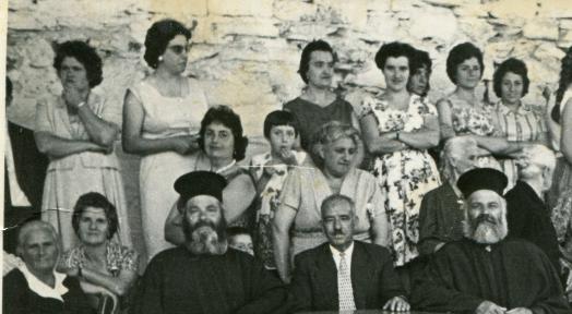 Επάνω, στη μέση από αριστερά: Πασχάλη Ειρηνούλα του Νικολάου (111272) σύζ. Ξηροπαΐδη Ιωάννη του Βασιλείου Η μικρή που έχει το χέρι στο στόμα είναι η Γαλανού Μαρία του Λεωνίδα (13111) συζ. Κυρτάτα Λεωνίδα του Δημητρίου. Πασχάλη Φωφώ του Σωκράτη (111212) σύζ. Λογοθέτη Γεωργίου του Ιωάννη Πίσω από τον Παπανικόλα διακρίνονται οι Κυρτάτα Μαριγούλα του Ανδρέα (141161) σύζ. Κουτσούκου Αντωνίου του Δημητρίου και η Κουτσούκου Φραεσκούλα του Μιχαήλ (1162) σύζ, Λογοθέτη Ζάννε του Αντωνίου.