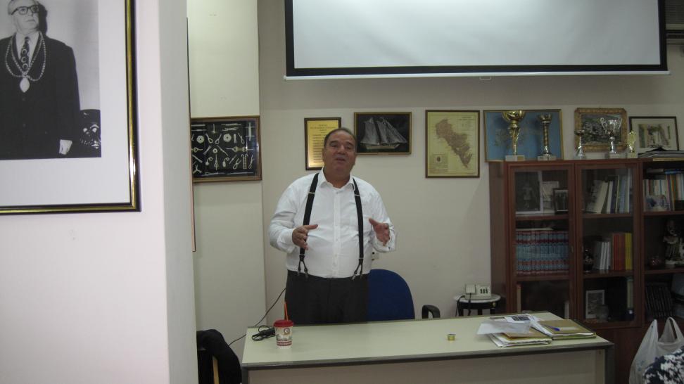 Πάνω, ο πρόεδρος του Συνδέσμου κος Χαρίλαος Χαζάπης καλωσορίζει τους παριστάμενους.