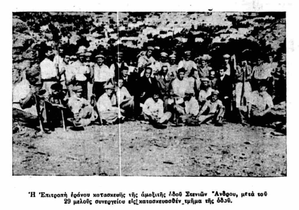 Από δημοσίευμα της εφημερίδα ΑΝΔΡΙΩΤΗΣ της Παρασκευής 23/5/1952. Στη κάτω σειρά και στο μέσο ο τότε Έπαρχος της Άνδρου. Τα πρόσωπα της φωτογραφίας αναφέρονται και εδώ. |