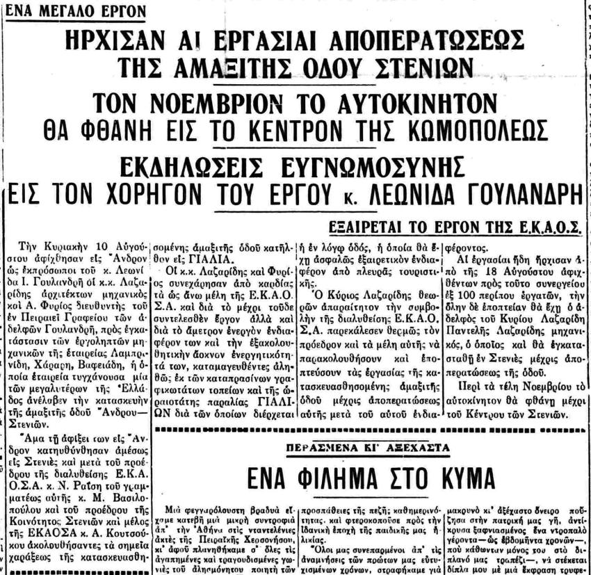 Από δημοσίευμα της εφημερίδα ΑΝΔΡΙΩΤΗΣ της Παρασκευής 29/8/1952. |