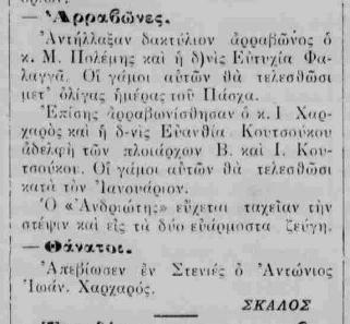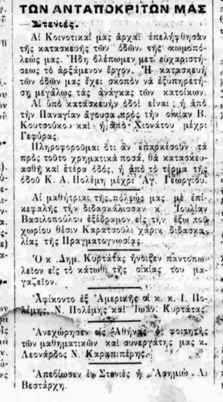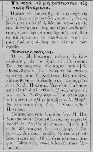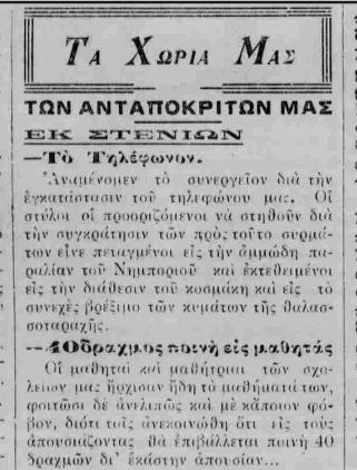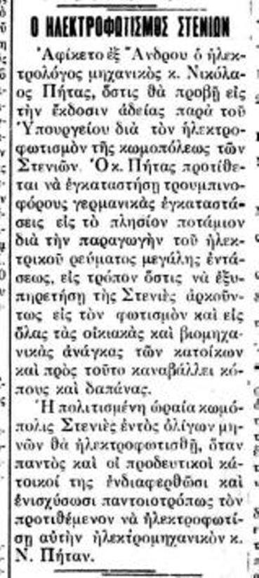 Πάνω, δημοσίευμα της εφημερίδας ΑΝΔΡΙΩΤΗΣ της 16/10/1926 που αναφέρεται σε νέα από τις Στενιές της Άνδρου.