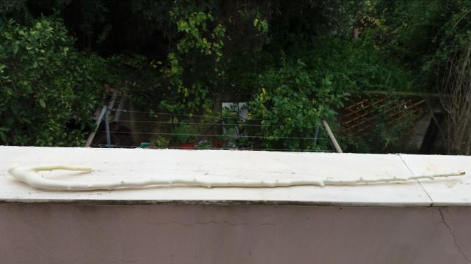 Πάνω, κατζουρίδα μήκους 145 cm πριν και μετά την επεξεργασία της.