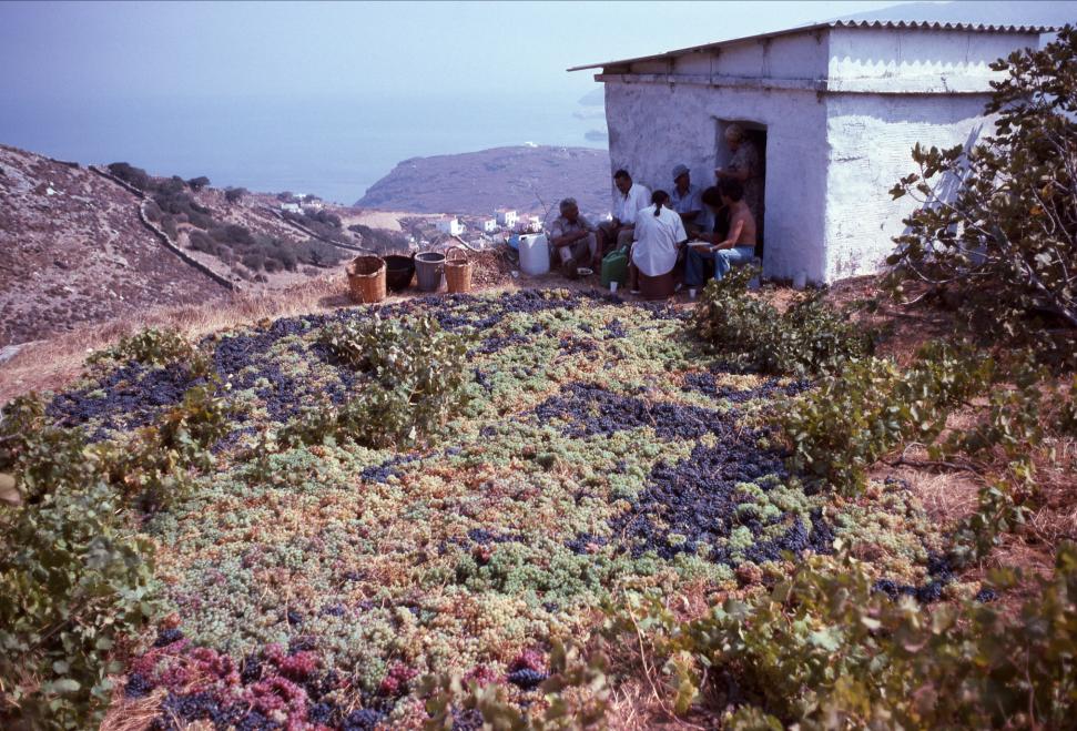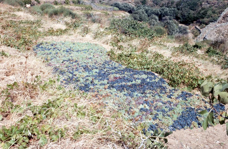 Ο χώρος του αμπελιού που είχε καθαριστεί επιμελώς και είχε στρωθεί με ξερά χόρτα για να λιαστούν τα σταφύλια μετά τον τρύγο και πριν το πάτημα