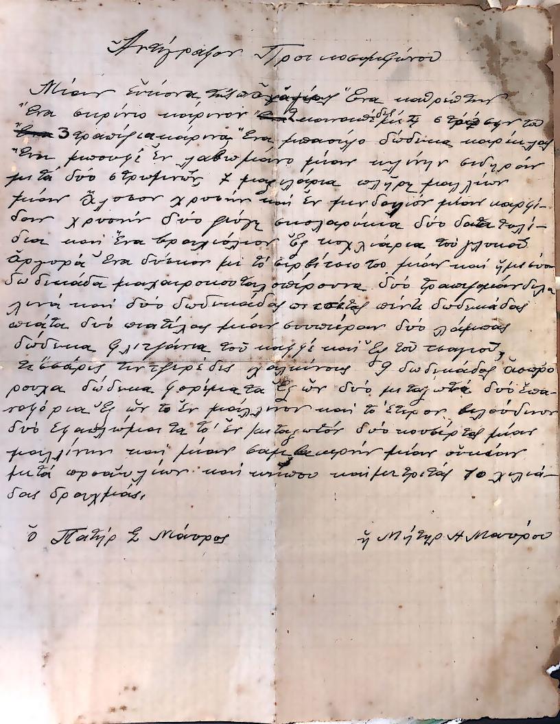 Τη φωτογραφία του προικοσυμφώνου προσέφερε η δισέγγονη του Σταμάτη και της Αννεζιώς κα Αθηνά Βαλμά του Μιχαήλ σύζ. Βαγγέλη Σύμπουρα του Αντωνίου |