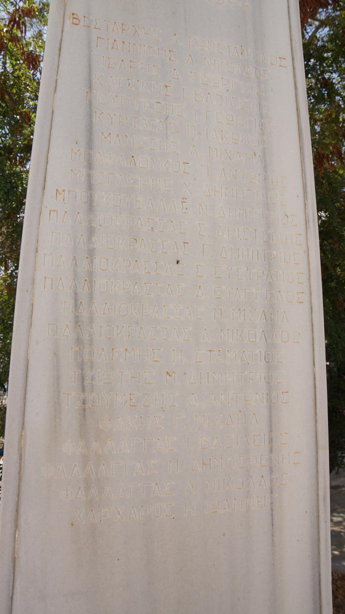Βαλμάς Αντώνιος του Ανδρέα (11144) - Βαλμάς Μιχαήλ του Ιωάννη (11113) - Κουτσούκος Νικόλαος του Λεωνίδα (1181) - Μάνεσης Γιαννούλης του Λεονάρδου (1111257) - Παλαιοκρασσάς Δημήτριος του Γ. (σημ. η αναφορά είναι με βεβαιότητα εσφαλμένη. Υπάρχει το ίδιο όνομα στο τμήμα του Β’ΠΠ). Παλαιοκρασσάς Δημήτριος του Νικολάου (1114162) #2769 Πασχάλης Γεώργιος του Δημητρίου (11126) - Πολέμης Αντώνιος του Ηρακλή (111283) - Στεφάνου Μιχαήλ του Στεφανή (121) - Φαλαγκάς Αλέξανδρος του Γιαννούλη (1436) - Χαζάπης Αντώνιος του Νικολάου (1223) #184 Χαζάπης Νικόλαος του Ανδρέα (1132) #300 info.