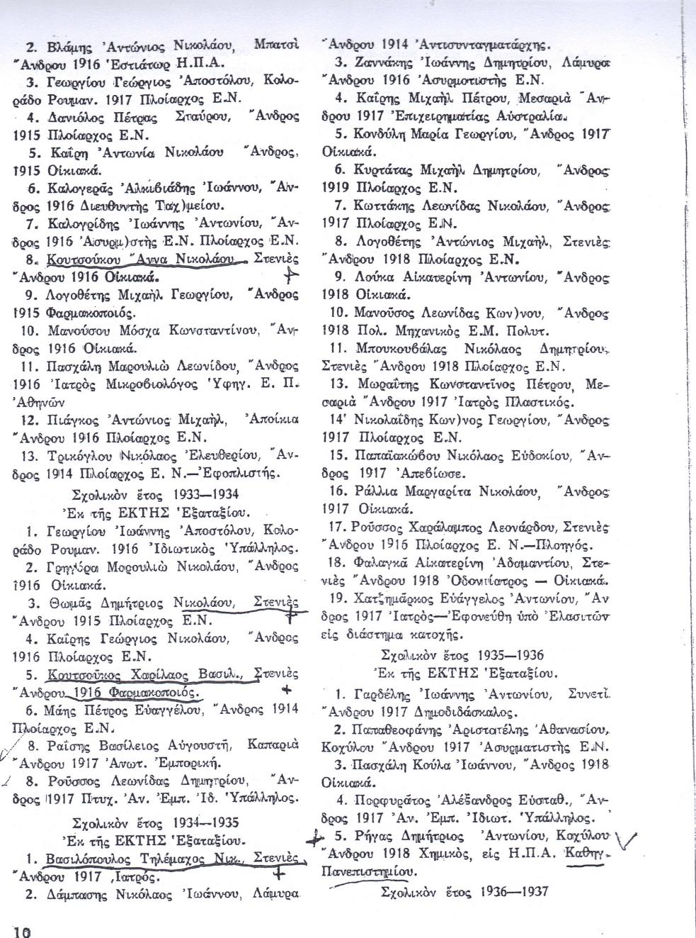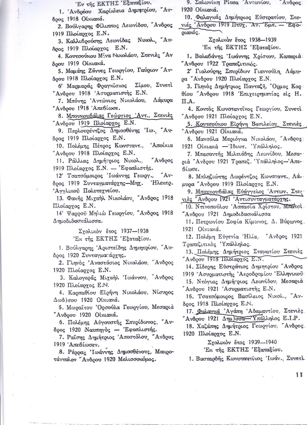 Αποφοιτήσαντες μαθητές από το Γυμνάσιο Ανδρου από το 1927 έως το 1945.