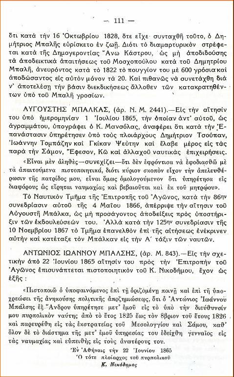Στις σελίδες 111 έως και 113 αναφέρονται τα ονόματα των αδελφών Μπάλση Αντωνίου του Ιωάννη (12) και Μπάλση Δημητρίου του Ιωάννη (11) #4930. |