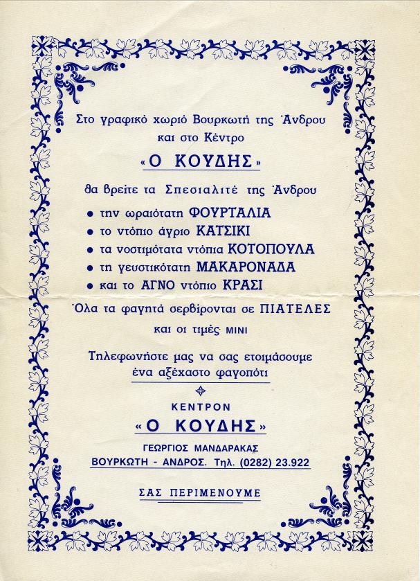Δεξιά, διαφημιστικό του μαγαζιού του Κούδη.