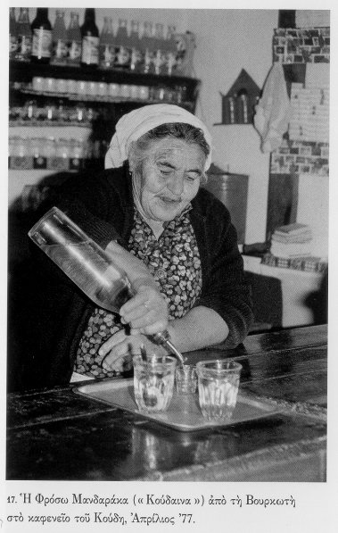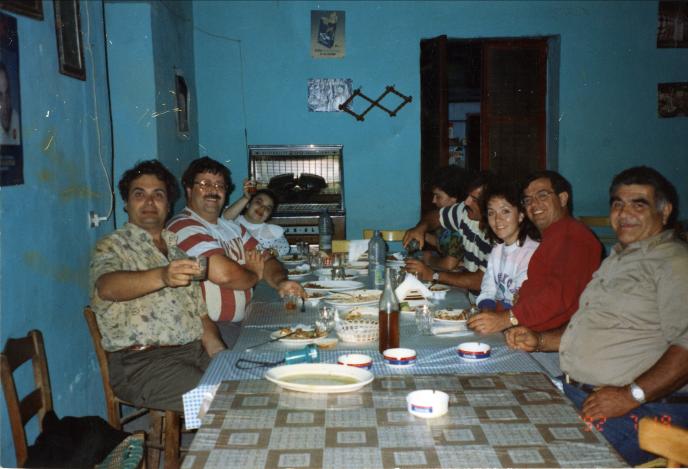 Πάνω και κάτω φωτογραφίες από Στενιώτες στη δεκαετία του 1980 στο μαγαζί του Κούδη. Ο Γιώργης Μανδαράκας στην πάνω φωτογραφία καθιστός δεξιά. Ακρη αριστερά ο κος Σοφοκλής Καραγιάννης. Στην πάνω φωτογραφία φαίνονται το jukebox μάρκας ROCK-OLA των 200 επιλογών καθώς και κλειστή η μεσόπορτα που συνέδεε τους δύο χώρους του μαγαζιού.