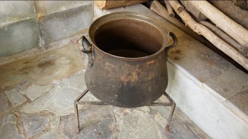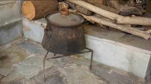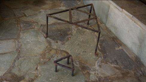 Επάνω, αριστερά πυροστιές. Δεξιά, μπακιρένιο καζάνι καθισμένο σε πυροστιά. Ο μικρός κύλινδρος στο κέντρο του καπακιού του καζανιού δεν είναι τίποτε άλλο παρά η λαβή του καπακιού. Κάτω, αριστερά το καζάνι ανοικτό, χωρίς το καπάκι του. Η διάμετρος του στομίου του είναι περίπου 40 εκατοστά. Κάτω δεξιά, καζάνι με το πήλινο καπάκι που αποτελεί το δεύτερο από τα τρία βασικά κομμάτια του ρακαγγιού.