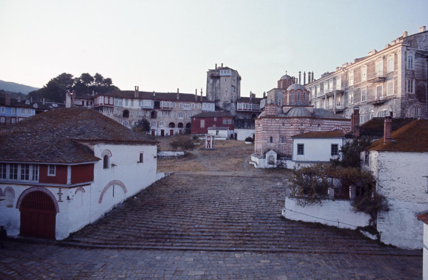 Vatopediou Monastery, the view from the Archontariki. Ιερά Μονή Βατοπεδίου, η θέα από το Αρχονταρίκι.