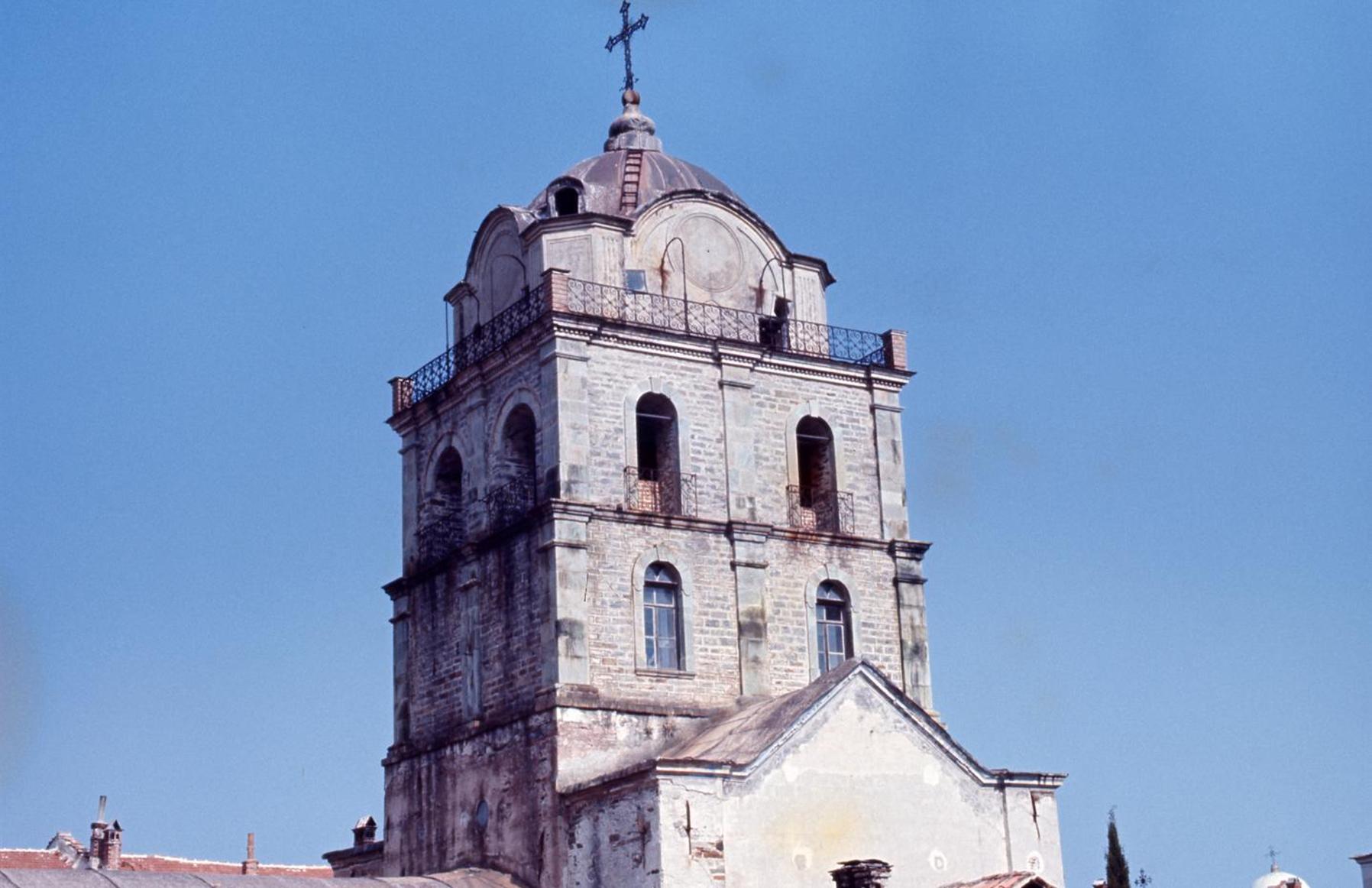 The bell tower stands on top of the Trapeza.