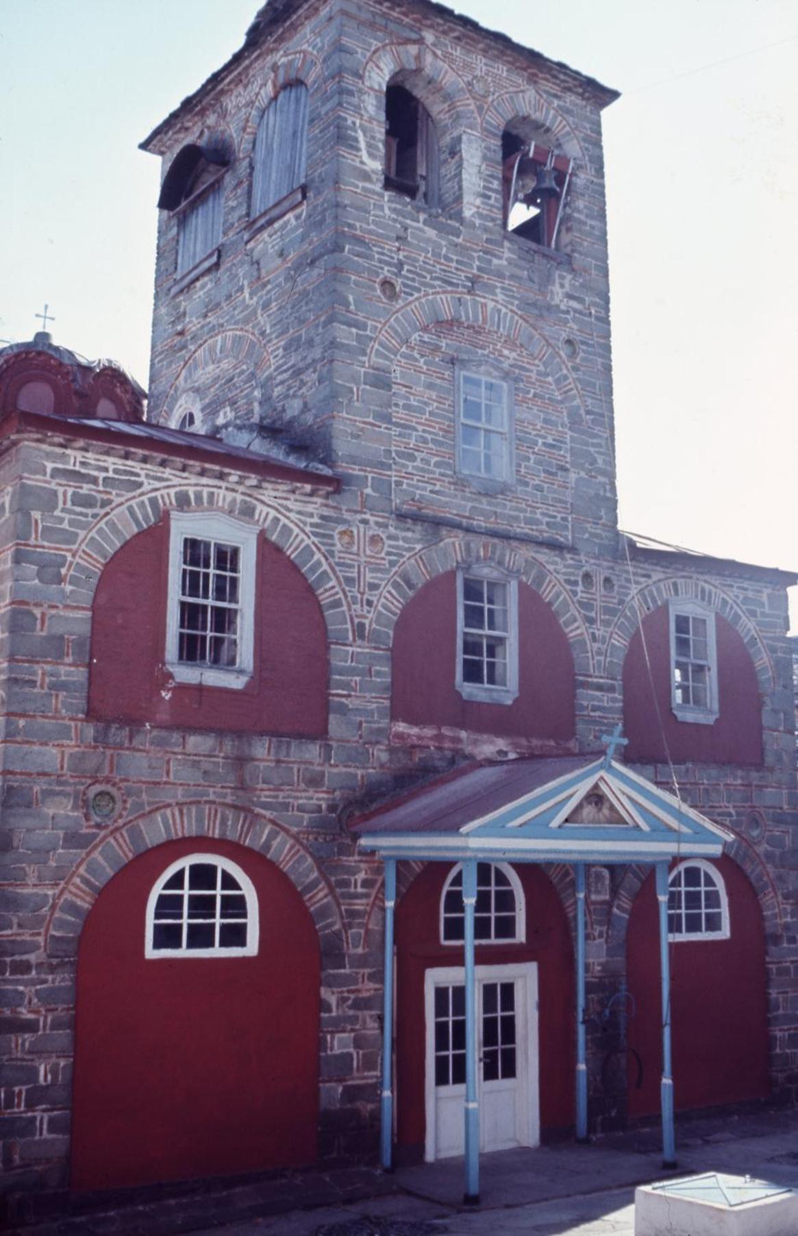 The entrance of the Katholikon and the bell tower