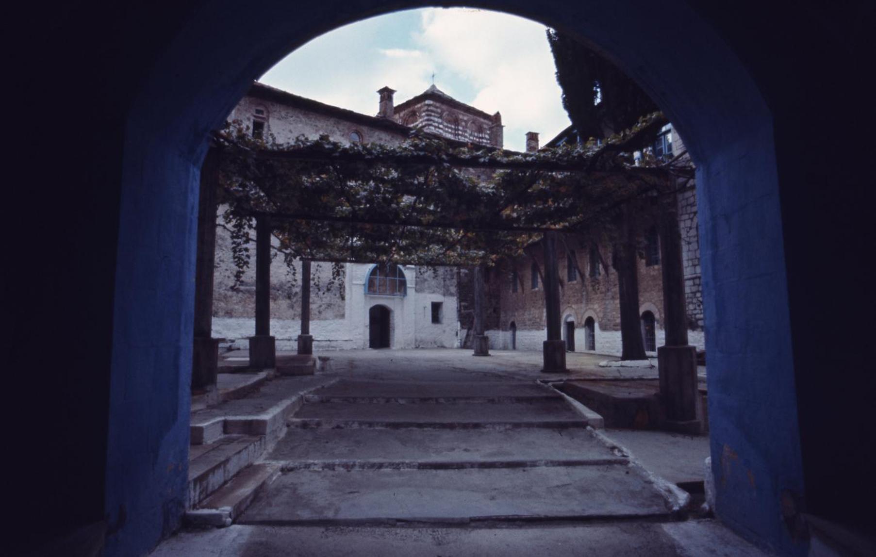 Η θέα της εσωτερικής αυλής από την πύλη του μοναστηριού.
