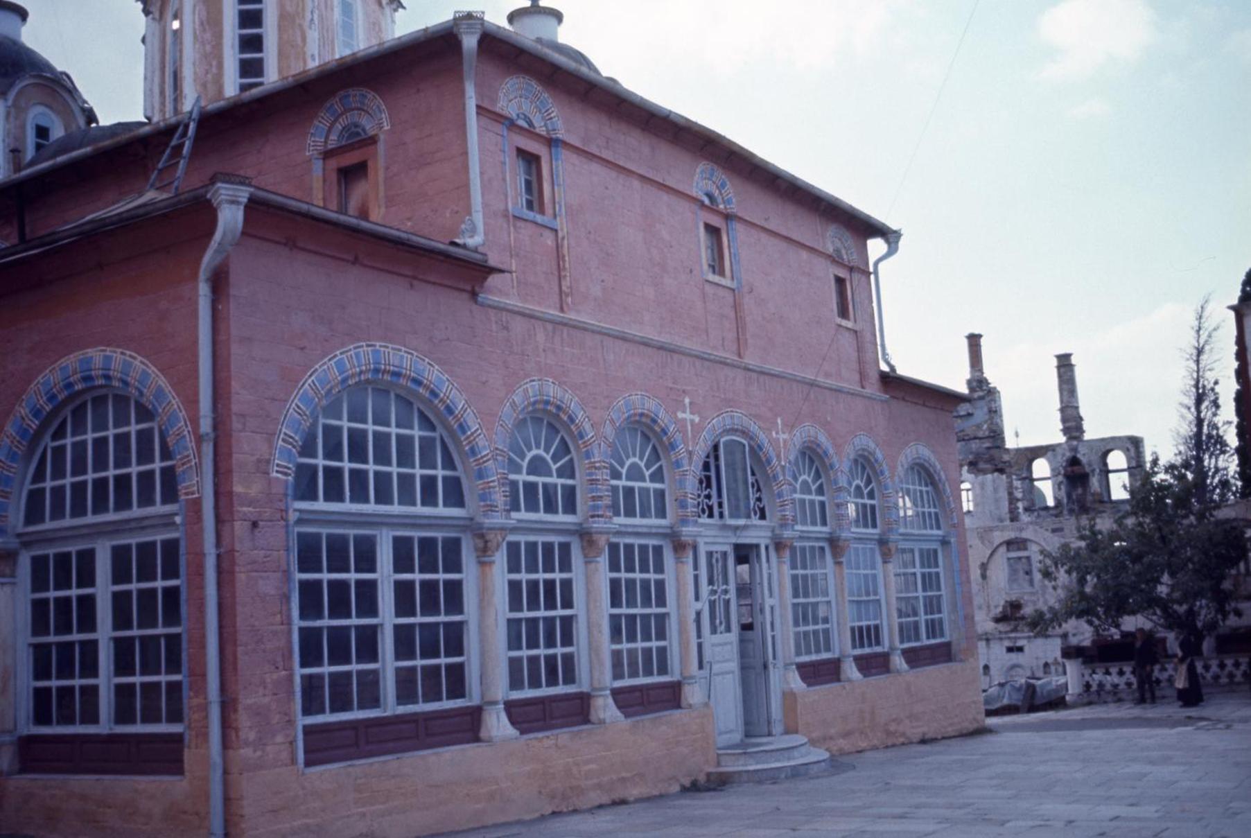 View of the inner yard and the Katholikon in the centre. To the right the Bell tower.