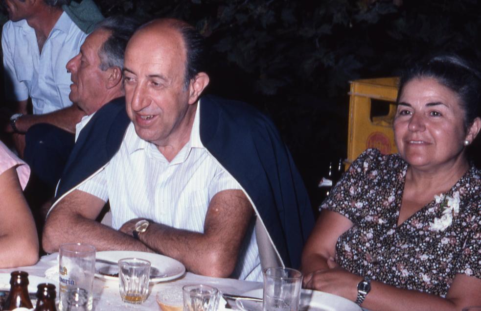 Πάνω ο Δημήτρης με τη σύζυγο του Ελένη το 1982 σε μια ταβέρνα στην περιοχή του Κορθίου.
