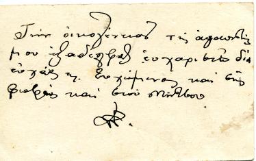 Επάνω, το επισκεπτήριο του Σταμάτη. Οι ευχές είναι για την Φωφώ και Μήτσο Πασχάλη.