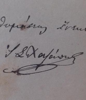 Πάνω, λεπτομέρεια του πίσω μέρους της φωτογραφίας με την υπογραφή του Γιάννη.