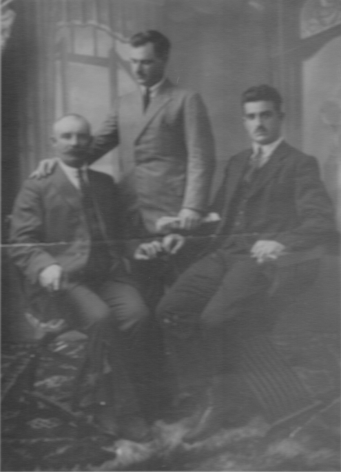 Αριστερά καθιστός ο Κατσίκης Ιωάννης του Δημητρίου (γεν.1866) (13) #1421 Ορθιος ο γιος του Κατσίκης Ευάγγελος του Ιωάννη (γεν.1894) (132) #4466 και δεξιά καθιστός ο γιος του Κατσίκης Βασίλειος του Ιωάννη (γεν.1896) (133) #3129 info.
