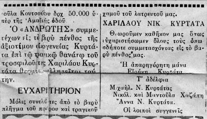 Κάτω, αποκόμματα της εποχής που αναφέρονται στο τραγικό συμβάν.