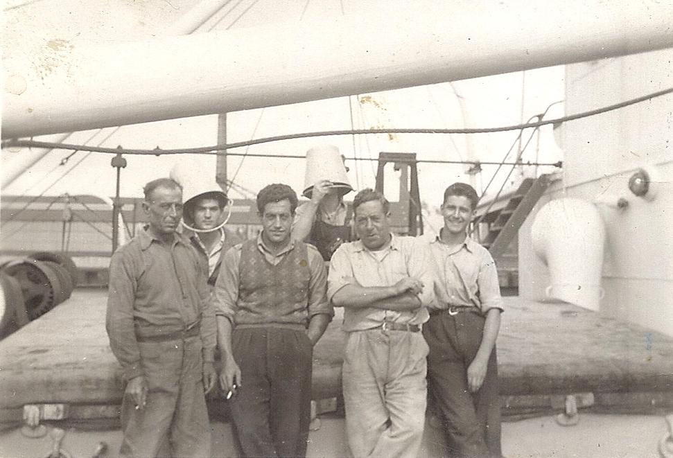 Ο Μιχάλης, Πλοίαρχος, εμπρός, με το άσπρο πουκάμισο, τρίτος από αριστερά. Εμπρός, δεύτερος από αριστερά ο αδελφός του Μιχάλη, Κυρτάτας Δημήτρης του Λεωνίδα (11221425) #3260 Πρώτος Μηχανικός.