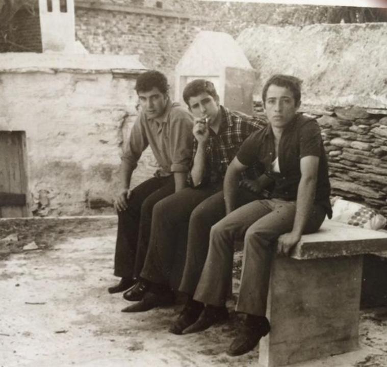 Η φωτογραφία τραβήχτηκε στις αρχές της δεκαετίας του 1970. Η τοποθεσία είναι στο δρόμο στα Γιάλια, έξω από το σπίτι του Νικηφόρου Κυρτάτα. Αριστερά διακρίνεται το κτίσμα που λειτουργούσε σαν εργαστήριο η Γιαουρτού(1), αργότερα σαν καφενείο ο Αλή Σαβάν(2) και τώρα είναι το σπίτι του Ανδρέα Κουτσούκου.