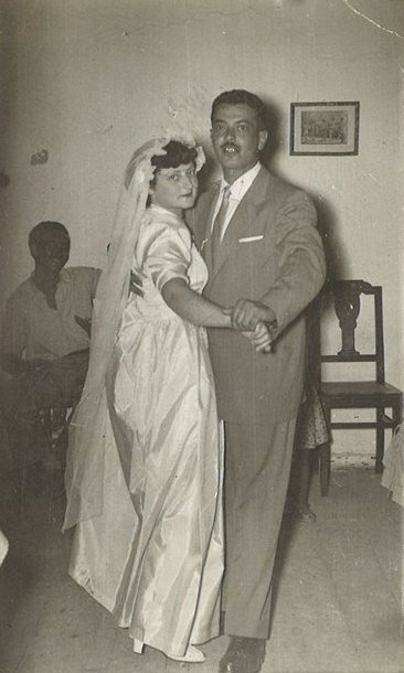 Πάνω και αριστερά, ο Ντίνος και η Καλλιόπη την ημέρα του γάμου τους.