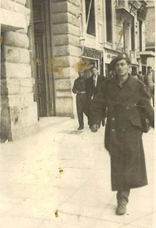 Πάνω, η Καλλιόπη και ο Ντίνος (στη φωτογραφία του 1948, 23 ετών τότε, όταν υπηρετούσε τη στρατιωτική του θητεία). Ο Ντίνος ήταν οδηγός ταξί και εξυπηρετούσε του Στενιώτες για δεκαετίες. |