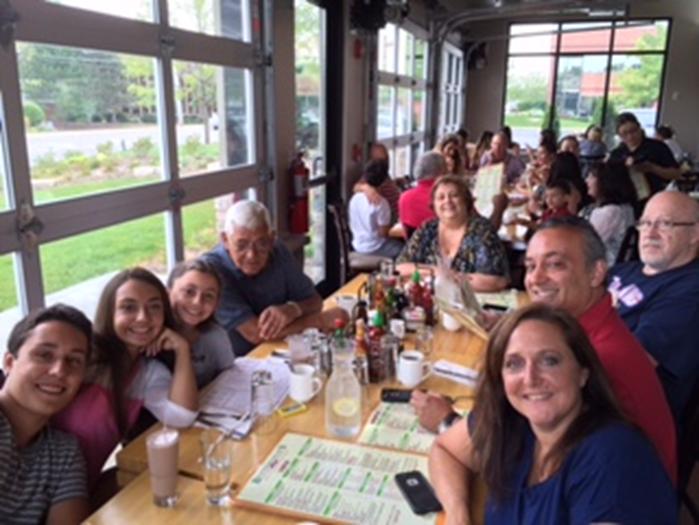 Από αριστερά τα εγγόνια της Grace Ann (Ανδρονίκης) Syregelas Χρήστος του Χριστόφορου (1523121) Syregelas Ανδριάνα του Χριστόφορου (1523122) Syregelas Alyssa του Χριστόφορου (1523123) ο πρώτος σύζυγος της Grace Ann (Ανδρονίκης) και πατέρας των παιδιών της Syregelas Χρήστος (15231) #5613 . Στην κεφαλή του τραπεζιού η Grace Ann (Ανδρονίκη) Δεξιά σε πρώτο πλάνο Η νύφη της Grace Ann, Kimberley (152312) ο γιος της Grace Ann, Syregelas Χριστόφορος του Χρήστου (152312) #5615 Και πίσω του ο δεύτερος σύζυγος της Grace Ann, Charles Sampson (15231) #5617. |