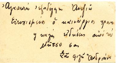 Πάνω, το επισκεπτήριο της Ανδριάνας. Οι ευχές είναι για τον Μήτσο Σ. Πασχάλη.