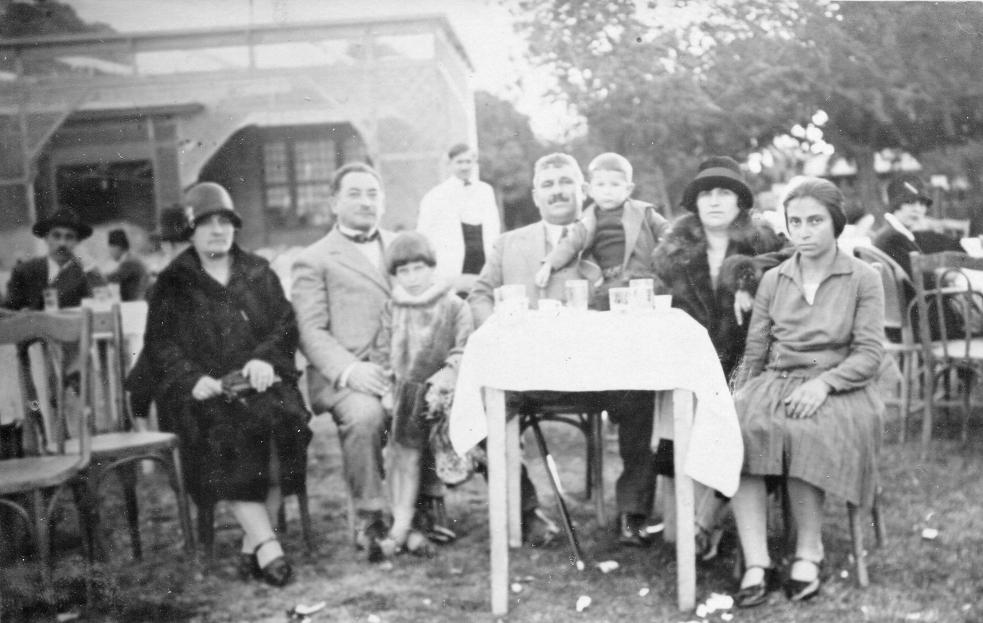 Ο Νίκος Μαρής στο κέντρο της φωτογραφίας πίσω από το τραπέζι, κρατάει το γιο του Μιχάλη (11331). Δίπλα του, δεξιά του στη φωτογραφία η γυναίκα με το σκούρο καπέλο είναι η σύζυγος του Μαριόγκα Ραπτάκη του Νικολάου (11421)