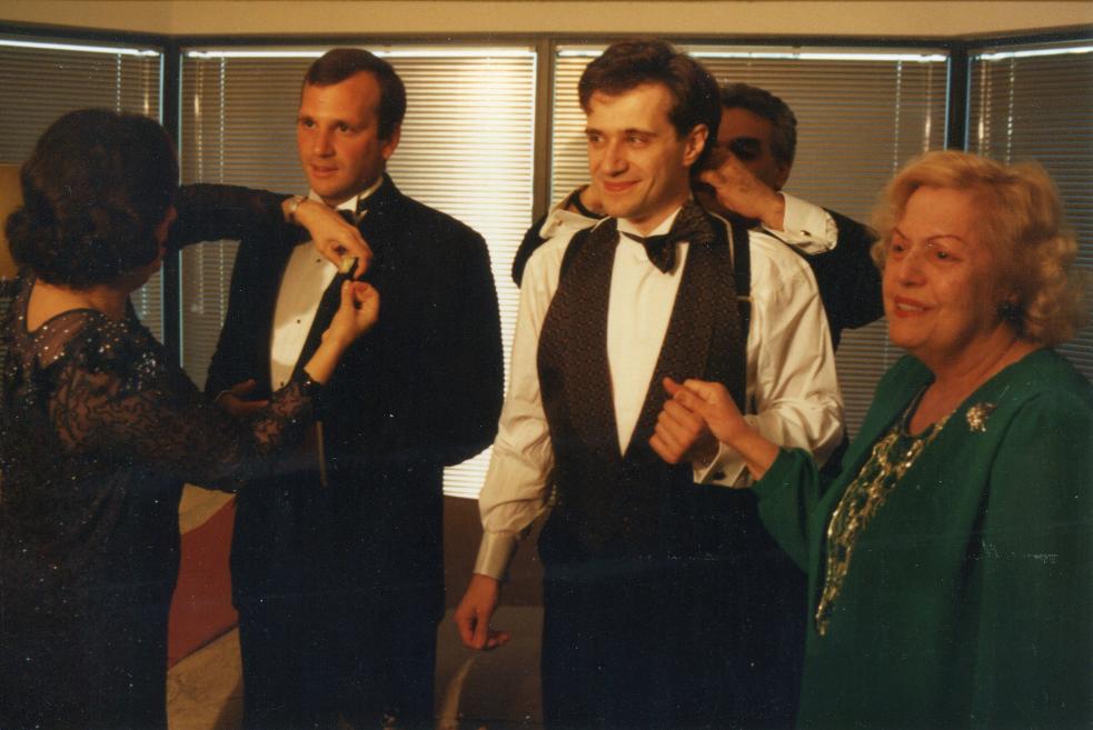Στη φωτογραφία επάνω, ο Ανδριανός (δεξιά) συνοδεύει το γιο του Μαρή Νίκο του Ανδριανού (113331) στην εκκλησία γαμπρό. Στη φωτογραφία κάτω ο Νίκος (δεξιά) και ο αδελφός του Μαρής Γιώργος του Ανδριανού (113332) αριστερά ετοιμάζονται για τον γάμο του Νίκου. Ο Γιώργος ήταν στο γάμο αυτό ο παράγαμπρος.