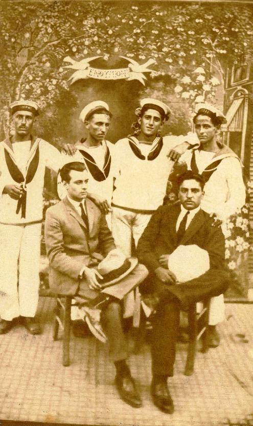 Ο Αντώνης Μπαφαλούκος όταν υπηρετούσε στο Πολεμικό Ναυτικό (όρθιος άκρη δεξιά.) Μπροστά του (δεξιά καθιστός) ο Εξαδάκτυλος Λεονάρδος του Νικολάου (123) #487 info. |